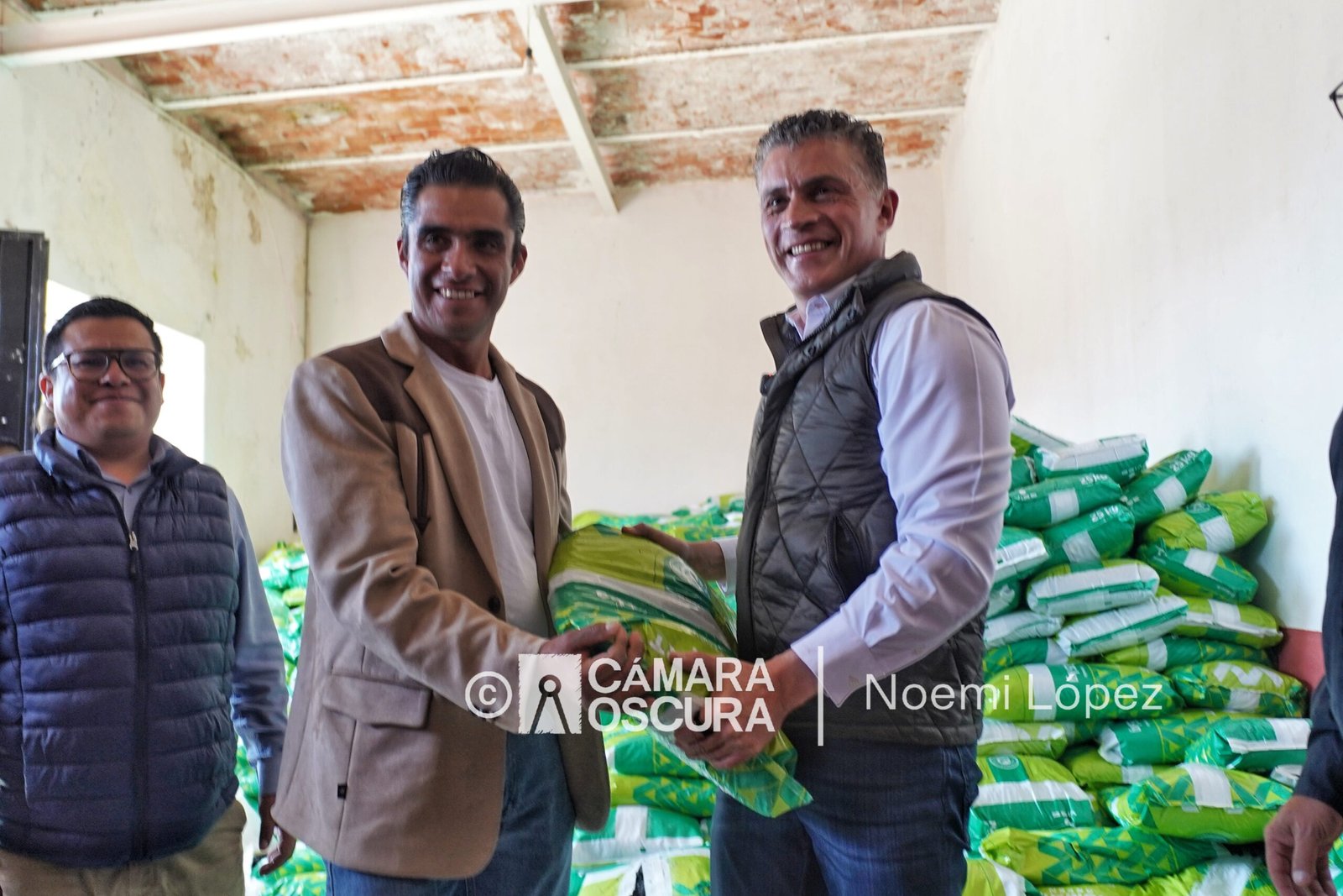 El presidente municipal Alfonso Sánchez García encabezó la entrega simbólica de 50 toneladas de material para bacheo en la comunidad de San Gabriel.