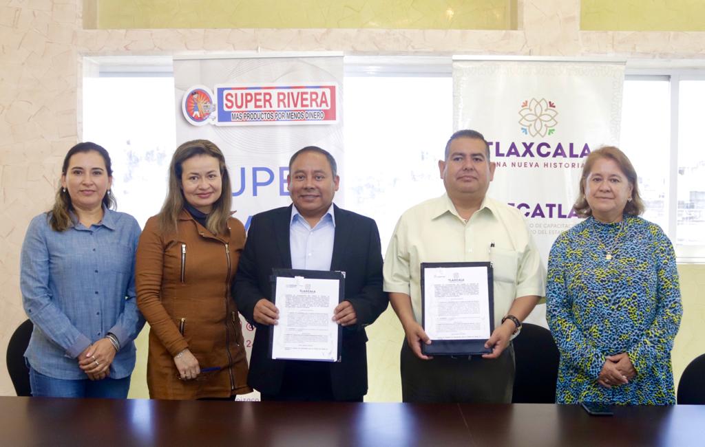 Con el objetivo de mejorar e impulsar la capacitación y el desarrollo económico local, el Instituto de Capacitación para el Trabajo del Estado de Tlaxcala (Icatlax) signó un convenio de colaboración con la cadena comercial Súper Rivera.